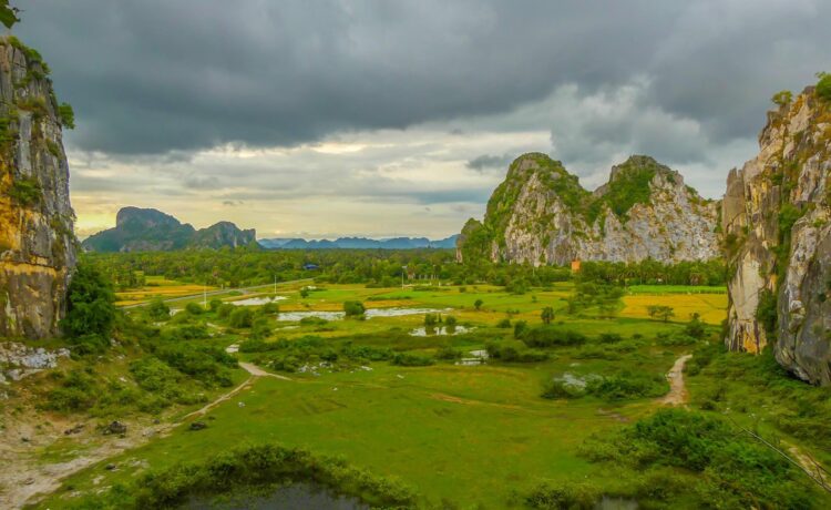 À l’est de la ville de Kampot, près de la frontière vietnamienne, la colline de Kampong Trach est l’un des sites naturels exceptionnels du Cambodge. Formations calcaires spectaculaires, grottes sacrées et cadre rural paisible offrent un magnifique mélange de nature, de spiritualité et d’aventure. La colline fait partie du district de Kampong Trach, une région de collines rocheuses, de rizières et de petits villages qui permettent aux visiteurs de découvrir la vie rurale cambodgienne authentique.